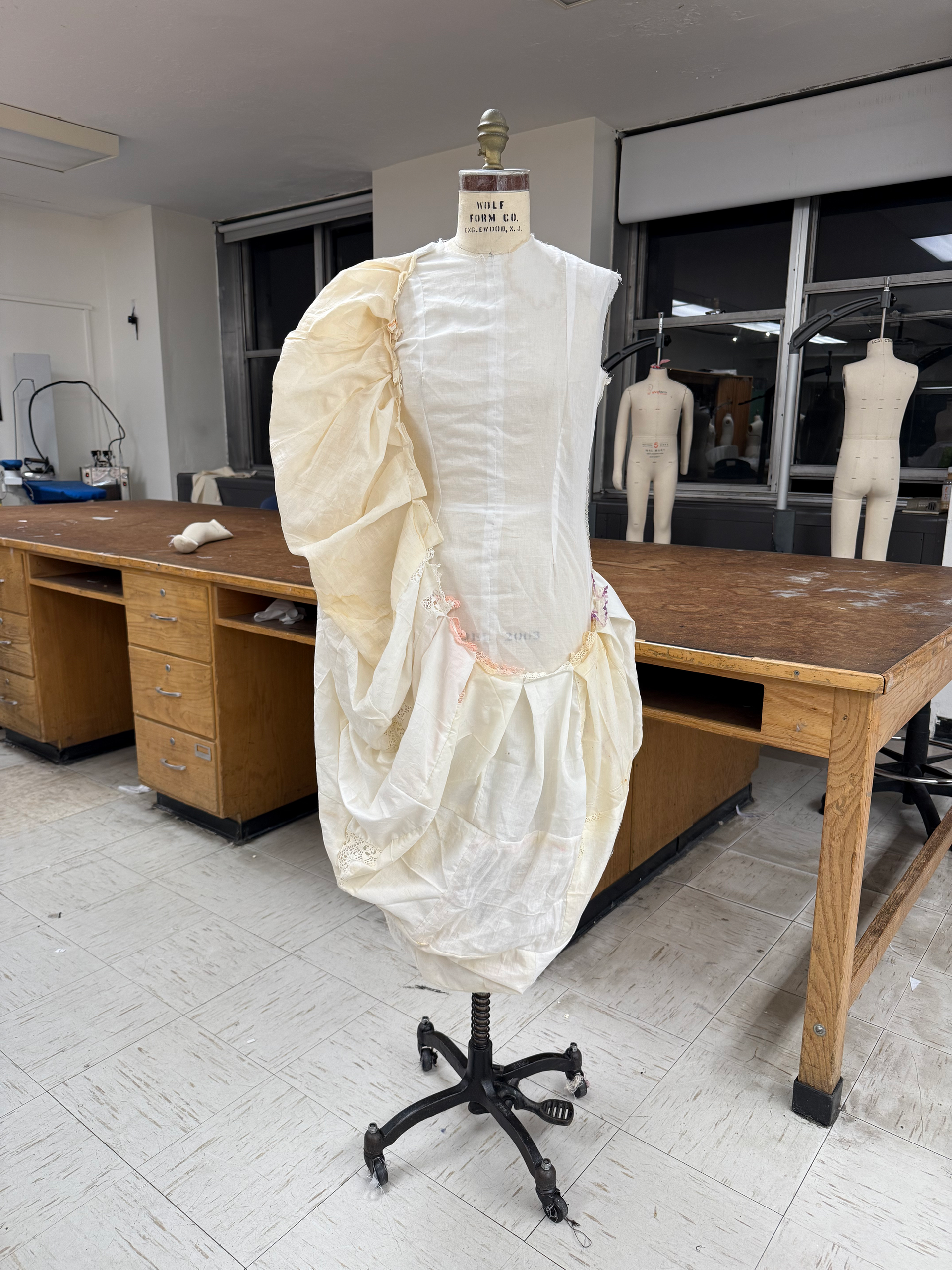 The theme for this project was "Blank Canvas". I used handmade, vintage hankies and doll dresses to symbolize my ideas of a soft femininity. Heavily inspired by dance and movement; I created an interesting silhouette that gives freedom to run, dance, leap over puddles, jump the turnstiles, sit in chairs, and truly live.