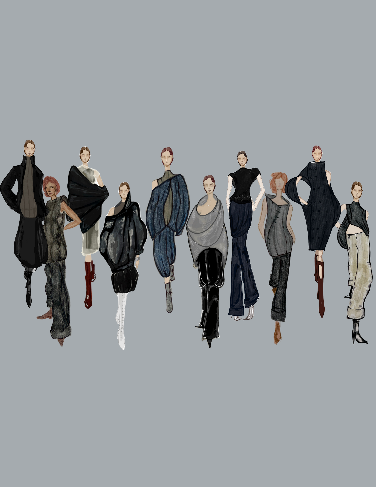 Inspired by my enjoyment of utilitarian clothing and Cristobal Balenciaga silhouettes. Driven by my yearning to understand what femininity means to me in a modern society.